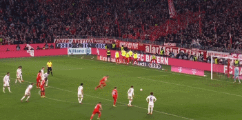 比賽的第87分鐘,拜仁禁區(qū)內(nèi)被拉倒,主裁判判罰點(diǎn)球,凱恩主罰點(diǎn)球右腳勁射破門,2比2!